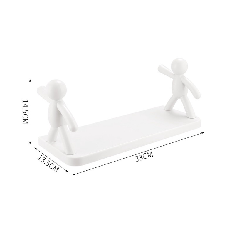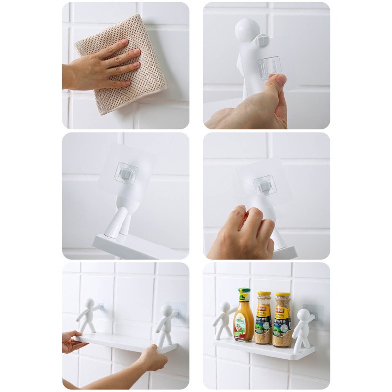 - Bộ sản phẩm gồm : 1 kệ dể đồ, 2 chú lực sĩ và 2 miếng dán chắc chắn
